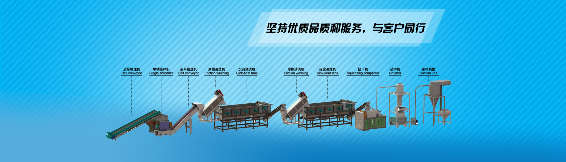 PE,PP 薄膜/編織袋清洗生產線(高效擠干)   該生產線是廢舊塑料PP/PE/HDPE/LDPE薄膜、絲、購物袋、編織袋等回收清洗的理想設備。
